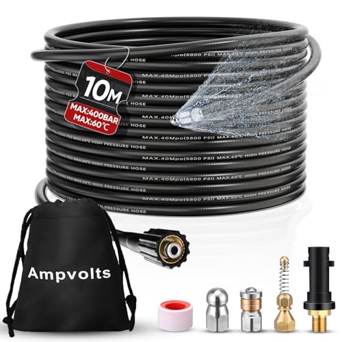 Ampvolts ケルヒャー パイプクリーニングホース 10mは、400Bar / 5800PSI対応で、K2〜K7シリーズの高圧洗浄機に適用。排水管・下水管・配管洗浄に最適です。