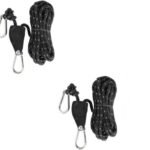 ガイロープは直径4mm、長さ4m、耐荷重400kgで、金属製フックと調整器が付属。防風ロープセットとしてタープやテント設営に最適。反射素材で安全性も高い、アウトドアにピッタリ。