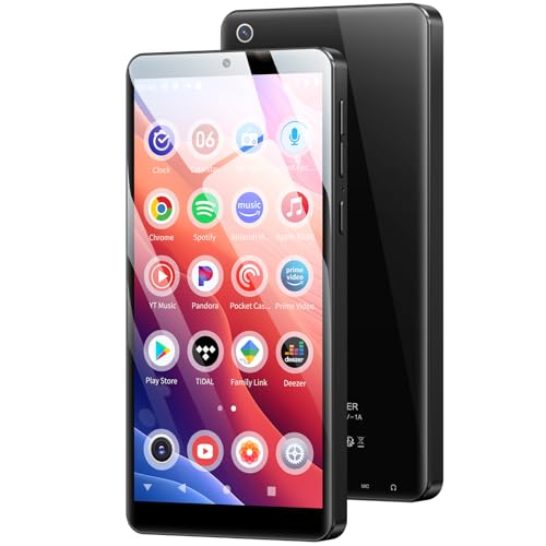 5.5インチのAndroid13搭載MP3プレーヤー。8コアプロセッサ、128GB内蔵、WiFiとBluetooth対応。音楽検索やアプリ導入が可能。1440P動画再生、2500mAhバッテリーで長時間使用、内蔵スピーカーとFMラジオ付き。