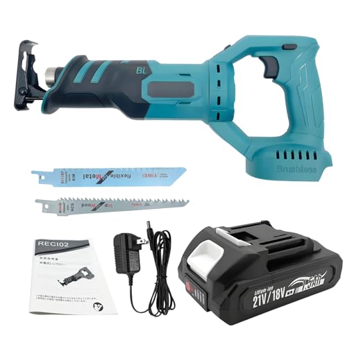 マキタ互換の充電式レシプロソー。18V対応のバッテリーと充電器セット。ブラシレスモーター搭載で生木や鉄工の切断作業に最適なコードレス電動のこぎりです。