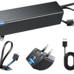 3台同時充電可能なコンセント一体型モバイルバッテリー。軽量160gで、Type-C入出力、急速充電22.5W、6000mAh大容量。内蔵LightningケーブルとLED電量表示付き。iPhone・Android対応、PSE認証済み。