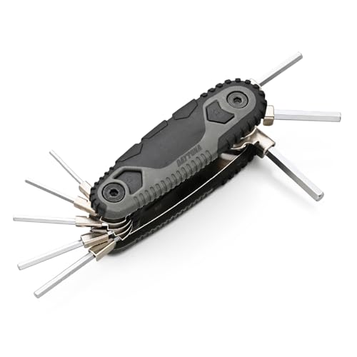 デイトナの折りたたみ式六角レンチセットは、合計8本で、3/32、7/64、1/8、9/64、5/32、3/16、7/32、1/4インチのサイズを揃えています。アングルロック機能付きで、使いやすく持ち運びに便利です。
