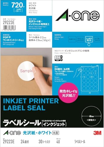 エーワン ラベルシール A4 光沢紙 30シートは、プロフェッショナルな仕上がりのラベルを簡単に作成できます。対応プリンターはインクジェット・レーザー対応で、豊富なデザインを作成可能です。