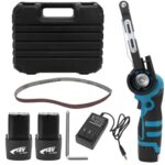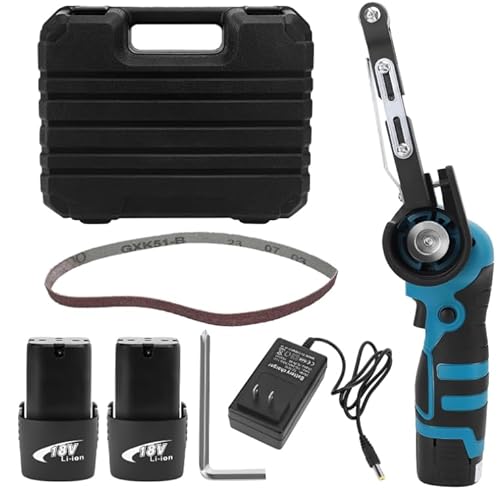 充電式の小型ベルトサンダーで、180°角度調整可能。バッテリー2個と替えベルト10本付き。日規充電器も含む。研磨や錆落とし、バリ取りに最適。ベルトサイズは10×355mmです。