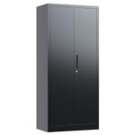 LOCENHU スチール書庫は、5段の鍵付きスチールキャビネットで、可動棚付き。A4サイズ対応、書類保管庫としてオフィスや学校、更衣室に最適です。組立が必要なブラックの収納家具です。