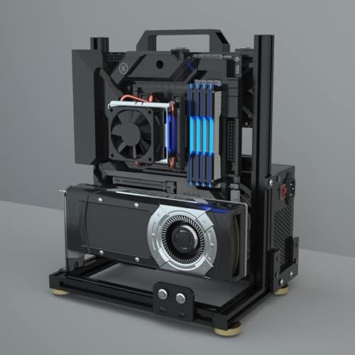 DIYコンピュータケース(ATX)で、オープンデザインが特徴。アルミニウム合金材質で良好な放熱性能を提供。高い耐久性と通気性を誇り、効率的な冷却が可能です。