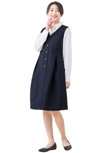 [ELENA] エレナ レディース マタニティ 洗える ジャンパースカート 前開き ボタン 事務服 ロング 大きいサイズ 通勤 ポケット付 (240204) XS レギュラー丈 ネイビーの製品情報