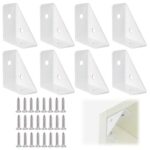 コーナーブラケット90度金具8個セット。サイズ38*38mmでデスクやベッドエッジの接合サポートに最適。キャビネット棚の補強に便利で、ネジ24本付き。カラーはホワイトです。