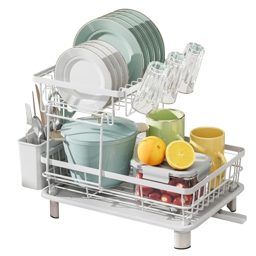 MIGABERの水切りラックは、シンク上に設置できる大容量の収納棚です。箸、コップ、お皿などを整理し、自動排水機能付きで自然乾燥が可能。防サビ加工されたステンレス製で、コンパクトかつ臭わない設計。組立も簡単で工具不要。