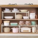 SVOHZAVのレンジ上ラックは、棚板の高さ調節が可能で、トースターや電子レンジを収納できます。多機能設計で省スペース、幅41~64cm、耐荷重50kg。8個のフック付きでキッチン収納に最適。