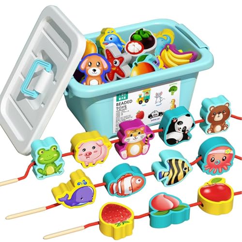 Vilomの木製知育玩具は、モンテッソーリ教育に基づいた紐通しおもちゃです。大粒ビーズ84個(動物、果物、野菜、海)、集中力や手先訓練を促進し、3歳以上の幼児に最適。誕生日プレゼントにもおすすめ。