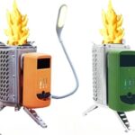 LumoLightキャンプストーブは、無煙で携帯可能な焚き火発電機。USB充電式で薪を使用し、アウトドアに最適な照明やバーナーとして活躍します。色はイエロー。