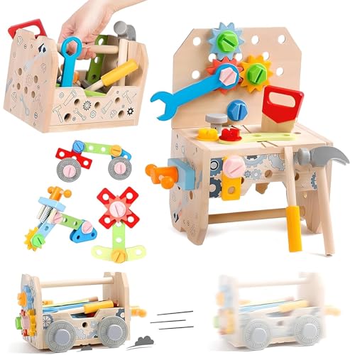 VIXA 組み立ておもちゃは4in1で、大工遊びを通じてモンテッソーリ教育に基づく知育効果があります。木製のため安全で、男の子・女の子問わず楽しめる。対象年齢は4〜6歳。誕生日やクリスマスプレゼントにも最適!