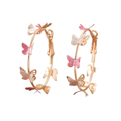 蝶モチーフ フープピアス レディース アクセサリー 華やか 揺れる 軽量 金属アレルギー対応 ギフト包装 誕生日 プレゼント 女性用 おしゃれ 上品 個性派 (ダークピンク) [並行輸入品]の高価買取ITEM