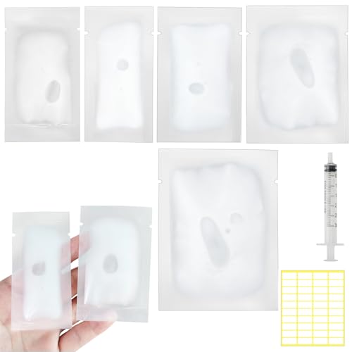Chisaflyの熱圧着パウチは、100枚入りで3mlシリンジと40枚のラベルシール付き。シャンプーや化粧水の小分け用に最適で、漏れ防止機能を備えた使い捨て容器です。出張に便利!