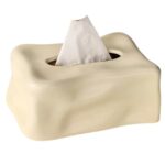 韓国インテリアの陶器ティッシュケース。シルバーとオフホワイトの組み合わせで、おしゃれなカフェ風のデザイン。サイズは19.5×14×9cmで、インテリアに華やかさを添えます。