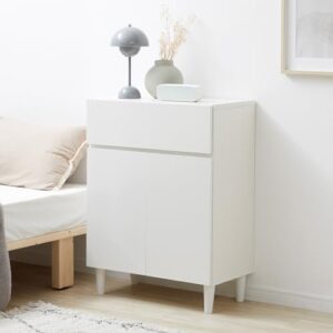 LOWYA ロウヤ サイドボード キャビネット ルーター収納 チェスト 収納棚 リビング コンパクト 扉付き 引き出し付き リビングボード 幅60cm ホワイト