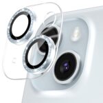 Podick カメラフィルムはiPhone 15/15 Plus用の9H強化ガラス製カメラカバー。耐衝撃性に優れ、高透過率で露出オーバーを防止。極薄デザイン、キズ防止機能付きのアルミ合金製で、黒縁取りのブルーが特徴。