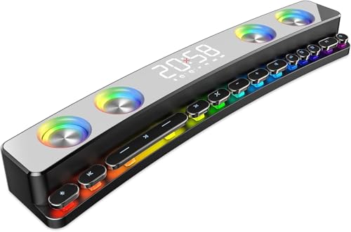 RGBライト搭載のPC用サウンドバー。迫力あるサウンドを提供し、USB給電と3.5mm接続でデスクトップに最適。ゲーミングや在宅ワーク、映画鑑賞にもおすすめのステレオスピーカーです。