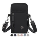 女性用小型クロスボディバッグ。ミニ携帯電話パース、リストレットウォレット、ショルダーバッグとしても使える。A-ブラック、Mサイズ。トラベルポーチとしても活用可能。