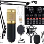 V8+サウンドカード搭載コンデンサーマイクセット。オーディオインターフェイス、ボイスチェンジャー機能あり。録音、放送、ストリーミング、歌、カラオケ、ゲーム、講義に最適。