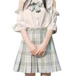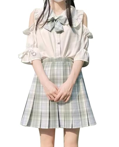 女子高生向けの白い2XLサイズのセーラー服半袖とチェック柄スカート、ネクタイ付き。スクール仮装に最適で、可愛らしいスタイルを演出します。