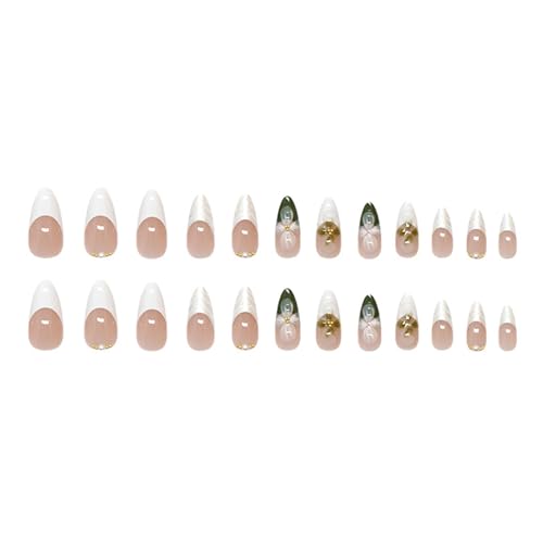 花のデザインのアーモンドプレス偽爪は、クリスマスパーティーにぴったり。素早く華やかなネイルデコレーションで、魅力的な手元を演出します。