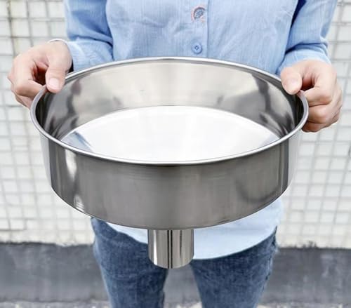 YongDerDerの特大ステンレス製ロートは、直径40cmの広口で、大口径ながら耐久性に優れています。液体と固体両用で、工業生産やDIY、食品加工にも適しています。持ち運びも簡単です。