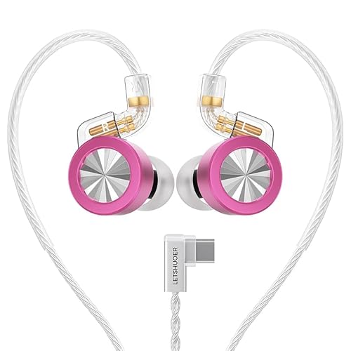 LETSHUOER「D02」は、二層磁気回路とダブルチャンバー構造を備えた11mmダイナミックドライバーの有線イヤホンです。ゲーム、動画視聴、通話に対応し、3.5mm/Type-C接続、マイク付きでケーブル交換も可能。ヒアーズ認証取得済み(ピンク、Type-C)。