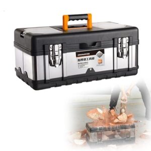 この工具箱は折りたたみ式で、軽量なステンレス製です。耐久性があり、サビに強く、持ち運びに便利なデザイン。多様なツールを収納でき、作業場やアウトドアで活躍します。