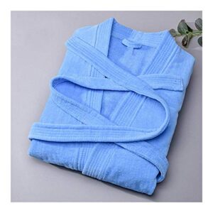 ラグジュアリーロングホームローブバスローブパジャマを着用してください すべてのコットンタオルカットベルベットバスローブ秋冬メンズ・レディース・ファイブスターホテルの美容室ローブプラスサイズ バスローブ (Color : Blue, Size : L)