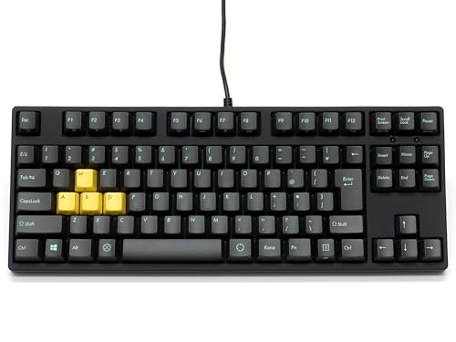 Majestouch SP Tenkeylessは、CHERRY MX2A紫軸を搭載したテンキーレスキーボードです。PBT2色成形のアスファルトキーキャップに、黄色のWASDキーキャップ付き。日本語かななしでマットブラックのデザイン。タクタイルな打鍵感が特徴です。