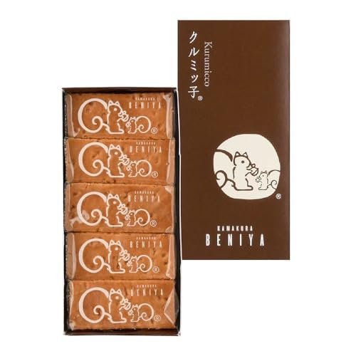 鎌倉紅谷のクルミッ子は、サクサクのクッキー生地にクルミと自家製のこしあんを贅沢に挟んだ和風スイーツです。5個入りのパッケージで、手土産や贈り物にも最適です。ほんのり甘く、絶妙な食感が楽しめます。