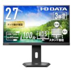 IODATAの27インチモニターEX-C272SDB-Fは、ADSパネルの非光沢仕様で、高さ調整、縦横回転が可能。HDMI、DisplayPort、USB-Cを備え、スピーカー付き。VESA対応で土日サポートも提供。