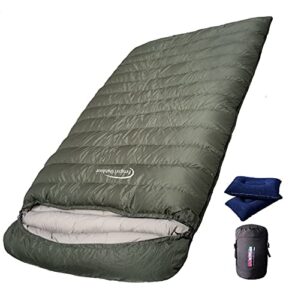 Fengzel Outdoor 二人用寝袋 封筒型 220*130cm ダウン率93% 1000-4000g高級羽毛充填 足が出せる 全開可能 最低使用温度-40℃ 3シーズン対応 キャンプ カップル 親子用 極限耐寒 シュラフ (3000gダックダウン詰め(厳寒用),ミリタリー)
