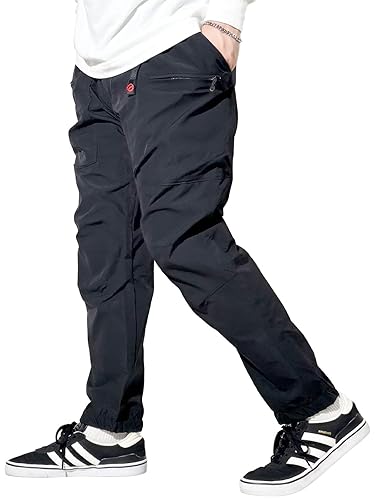 アウトドアプロダクツのポリストレッチ撥水加工クライミングジョガー。ジップ付きアンクル丈カーゴパンツ。メンズベルト付き、キングサイズ3L、カラーはブラック。