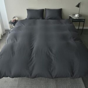 KIMKO 水洗い 掛け布団カバー ブルーグレーいチェック柄 簡単な ベット用品 ウォッシャブルコットン 寝具 優しい肌触り 柔らかい 通気性強さ 快適 四季適用 【4点セット:布団カバー+シーツ+枕カバー*2】 (# 026 ブルーグレー, ①シングル1.5)の高価買取