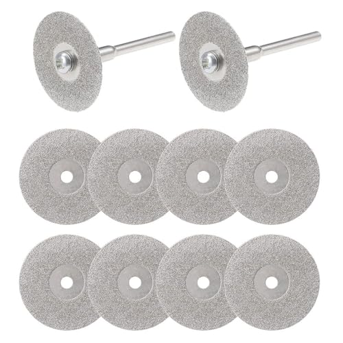10枚セットのミニダイヤモンドカッターは直径22mm、3mm軸が2本付属。ダイヤモンドビットブレードで、ミニルーターやルーターに適した精密なカッティングが可能です。