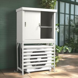エアコン室外機カバー 収納庫 2-in-1 防錆防風 鍵付き ホワイト スチール製 93×45×161cm ベランダ 庭 屋外用 可動棚付き