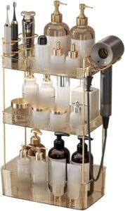 IWEJ バスルームオーガナイザー 2段/3段 排水機能 化粧品収納 アンダーシンク用 (3階,琥珀色)