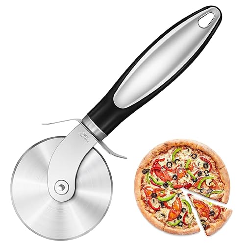 SensaBlissピザカッターはステンレス製で、滑りにくいハンドルと指保護装置付き。食洗機対応の便利なキッチン用品で、家庭用・業務用どちらにも最適です。