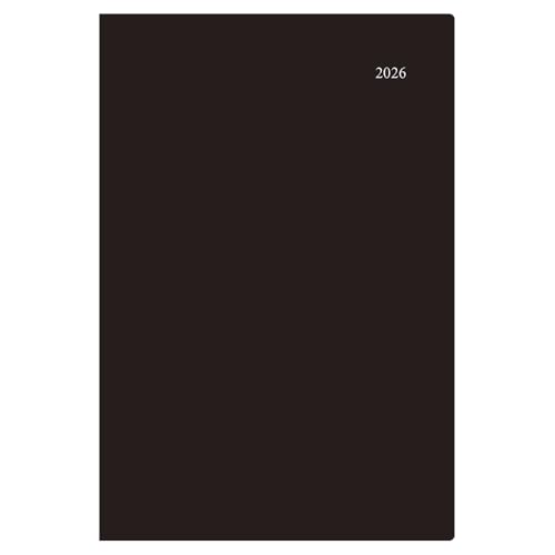 ダイゴーの2026年1月始まりのスケジュール帳。B5サイズ対応のマンスリーブロックチャート形式。アポイントの管理に最適な一覧タイプで、スタイリッシュなブラックデザイン。