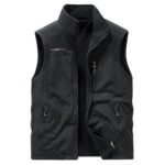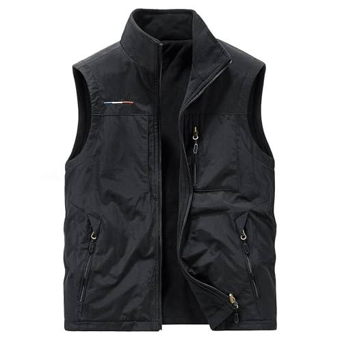Kayiiasuの両面着用アウトドアベスト。防寒・暖かい裹起毛素材、多ポケットで多機能。サイズM-5XL、撥水加工。釣りやキャンプ、登山に最適。カラー:ブラック(5XL)。