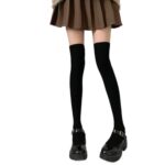 秋冬用の厚手リブ編みニーハイソックス。防寒効果があり、可愛い冬コーデにぴったりのロング丈。カラーはグレーとブラックがあり、並行輸入品として提供されています。