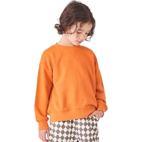 ever closetのスウェットトレーナー、キッズ用のオレンジ色(130サイズ)。長袖で無地、綿素材を使用。秋冬の通園・通学に最適な子供服です。男女兼用。