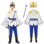 Moerstarのハロウィンコスプレ王子様衣装は、子供用で男の子向け。杖、マント、王冠付きの豪華なコスチューム。推奨身長140cm、パーティーや文化祭に最適。