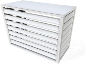 MTIETEME エアコン室外機用ルーバーは、風向きを調整できる防護柵。軽量で耐候性、亜鉛メッキ鋼製で防錆性もあり、多機種対応の簡単組立式。サイズは58x58cm。穴を開ける必要なし。