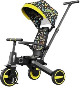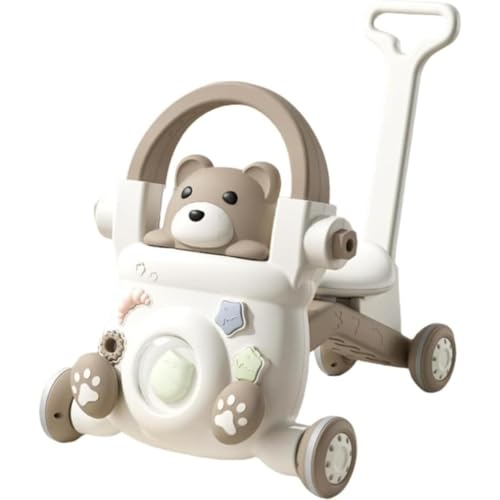 MYJYG 4-in-1ベビーウォーカーはバランスカー、スケートボード、トロリー三輪車の機能を持つ多機能乗用玩具です。押し棒付きで、1~4歳向けの歩行練習や知育に最適。おしゃれでかわいいコーヒー色、出産祝い・誕生日プレゼントにもぴったり。