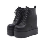 OUBINEWERのアンクルブーツは、厚底14cmで美脚効果抜群。レースアップとサイドジップで快適な履き心地。イベントやコスプレに最適で、シンプルながらオシャレなデザインが特徴。サイズは24.5cm。