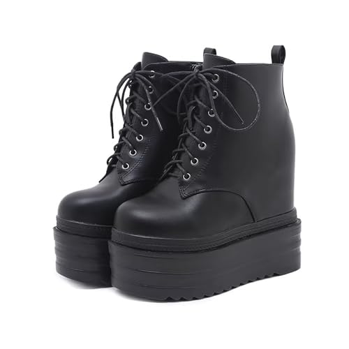 [OUBINEWER] アンクルブーツ 厚底ショートブーツ レディース 太ヒール 14cm身長アップ 美脚 シークレット レースアップ サイドジップ 歩きやすい 疲れない イベント 仮装 街着 コスプレ COSPLAY オシャレ シンプル (ブラック, 日本の靴のサイズ寸法, 大人, 数値, 24.5 cm)の製品情報